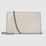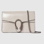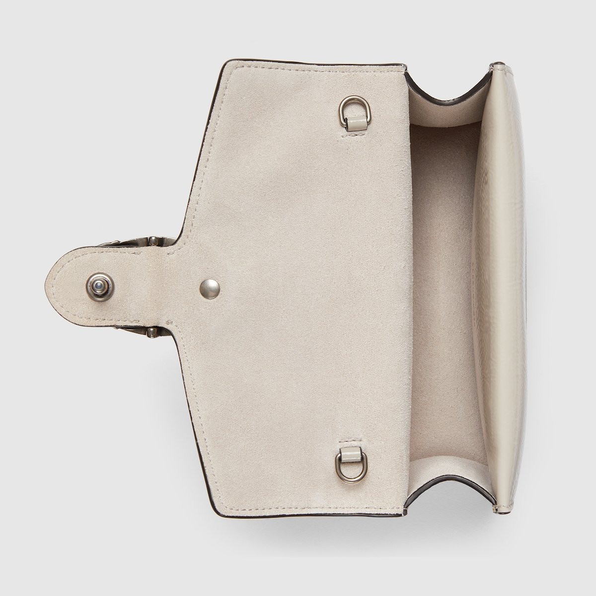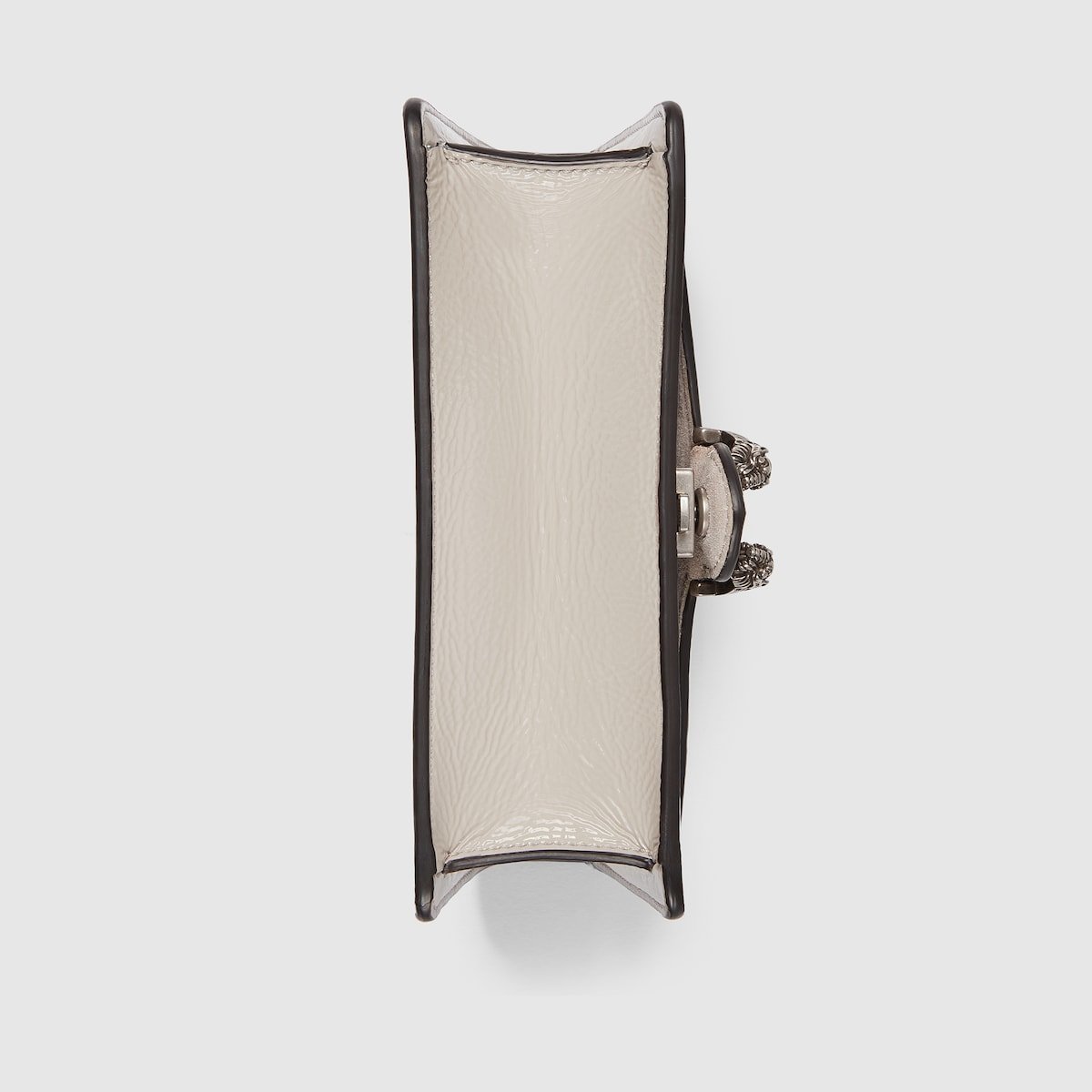 A shiny patent leather, in the signature Rosso Ancora shade of red, brings a fresh take to the Dionysus’ well-structured design, while creating contrast with the signature tiger head hardware in a light gold tone. A suede leather lining completes the style with an elegant finish.