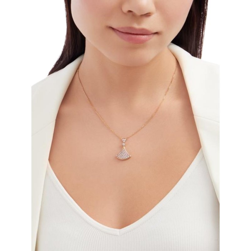 The DIVAS’DREAM necklace embodies Italian elegance and releases the power of women with a mysterious and unforgettable temperament. This jewellery is extremely feminine and elegant. The fan-shaped pattern is inspired by the marble mosaics of the Baths of Caracalla in Rome. The modern design and the dazzling diamonds highlight the intrinsic connection between Bulgari and the “Eternal City” – Rome.