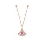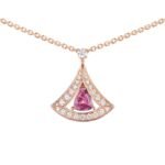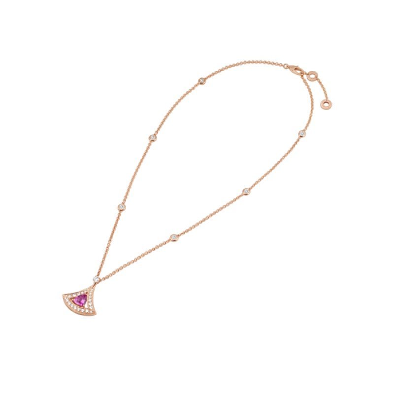 Inspired by feminine elegance and the allure of the Eternal City, the Divas’ Dream necklace pays tribute to the most fascinating women with a unique Roman spirit. Extremely feminine and refined, this necklace captures the colors of the Caracalla Baths marble and the curves of the fan-shaped mosaics, the true essence of Italian aesthetics. The extremely light and delicate openwork design reinterprets the iconic shape, playing with the charm of the virtual and the real.