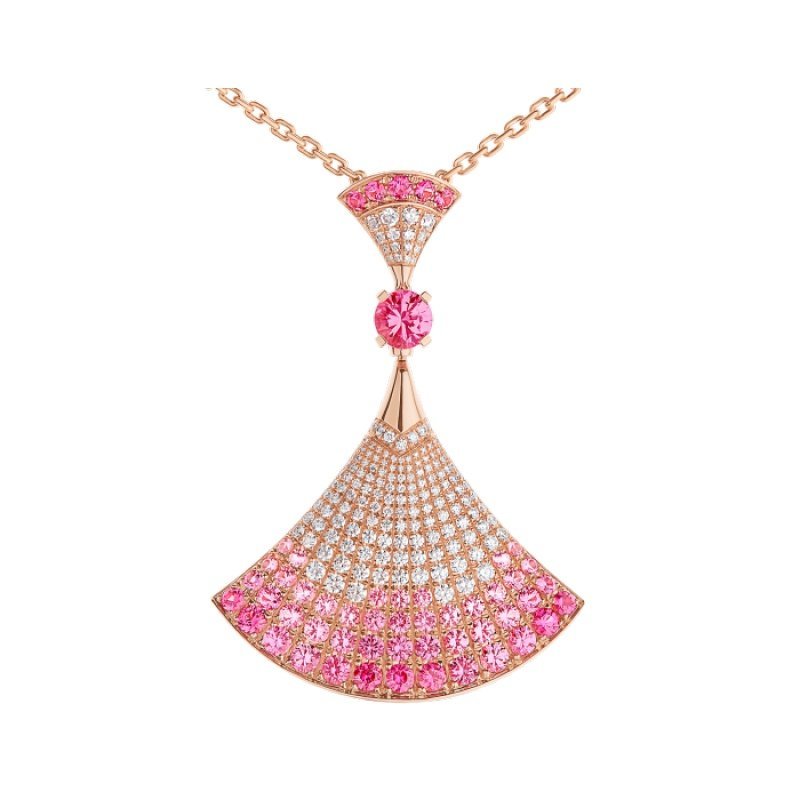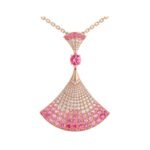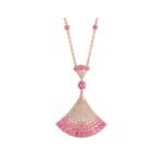The Divas’ Dream necklace embodies Italian elegance and unleashes feminine power with a mysterious and unforgettable temperament. The charming and exquisite jewelry is decorated with a fan-shaped pattern, inspired by the mosaic decoration of the Baths of Caracalla in Rome, and highlights the historical origins of Bvlgari and the “Eternal City” Rome with modern fashion design and the brilliance of precious gemstones.