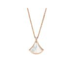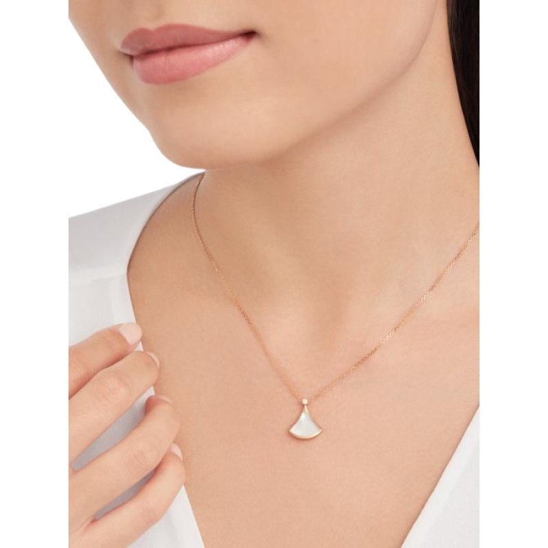 Inspired by feminine elegance and the allure of the Eternal City, the Divas’ Dream necklace pays tribute to the most charming women with a unique Roman spirit. Feminine and refined, this necklace captures the beauty of the marble of the Baths of Caracalla and the curves of the fan-shaped mosaics, the true essence of Italian beauty. Divas’ Dream necklace in 18K rose gold with mother-of-pearl and diamonds. Length 16-17 inches (41-43 cm).
