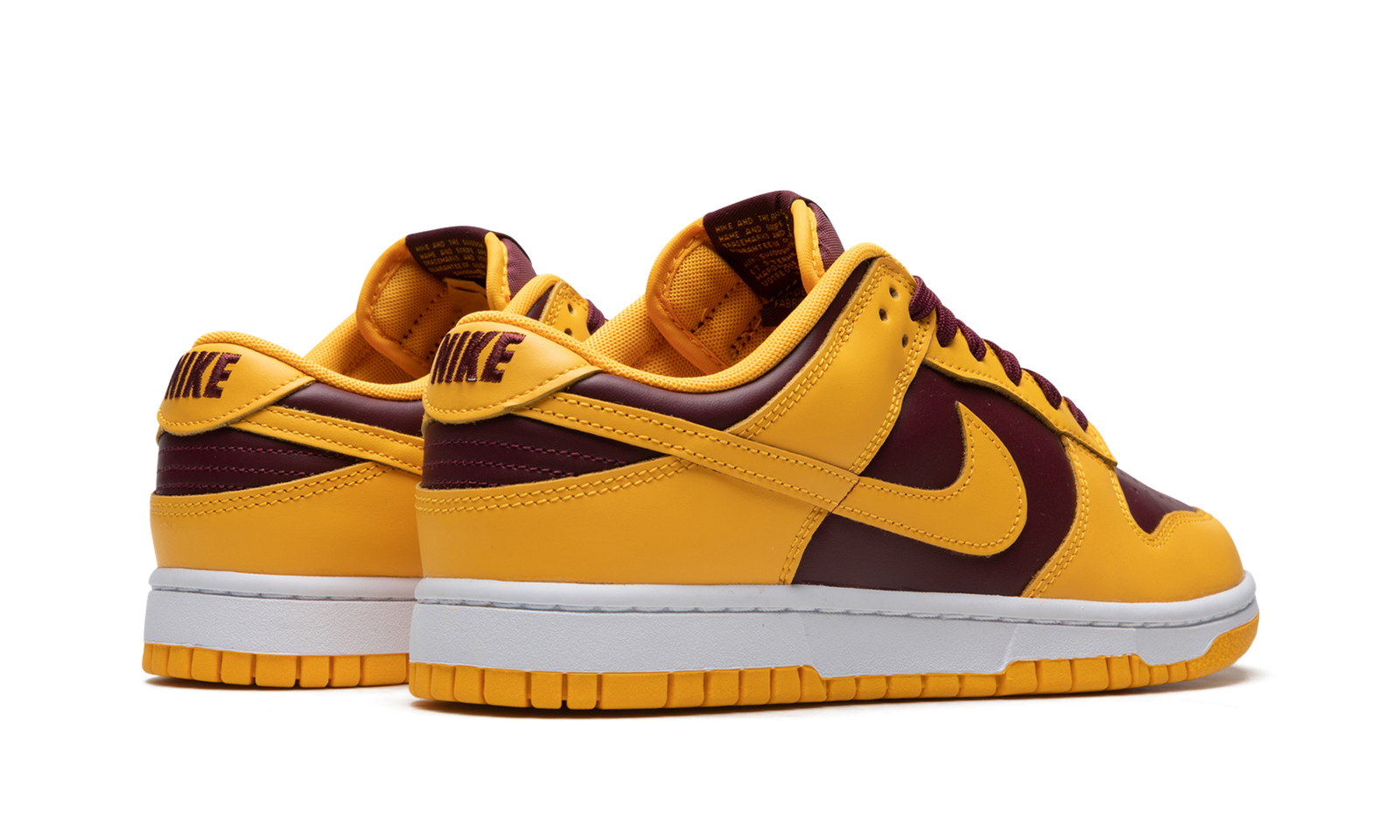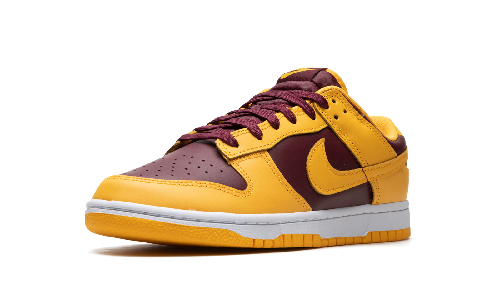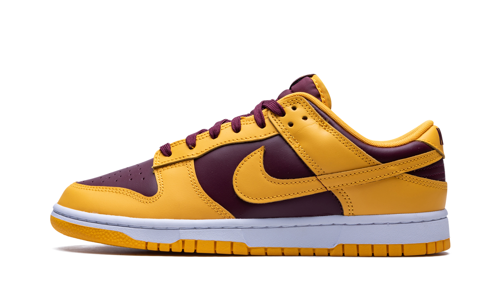 The Nike Dunk Low “Arizona State” is a two-tone colorway of the retro basketball shoe that draws inspiration from the Arizona State Sun Devils’ team uniform colors. The “Arizona State” Dunk Low is yet another college basketball-inspired look for the shoe that debuted as the sport’s first team sneaker back in 1985. In spite of its lack of official affiliation with Arizona State, the colorway nonetheless nods to the school and its basketball team with its maroon-and-yellow design. The base of the shoe features Bordeaux-colored leather while the overlays and Swoosh appear in yellow leather. A white midsole and yellow rubber outsole put the finishing touches on the shoe. Release date: November 1, 2022