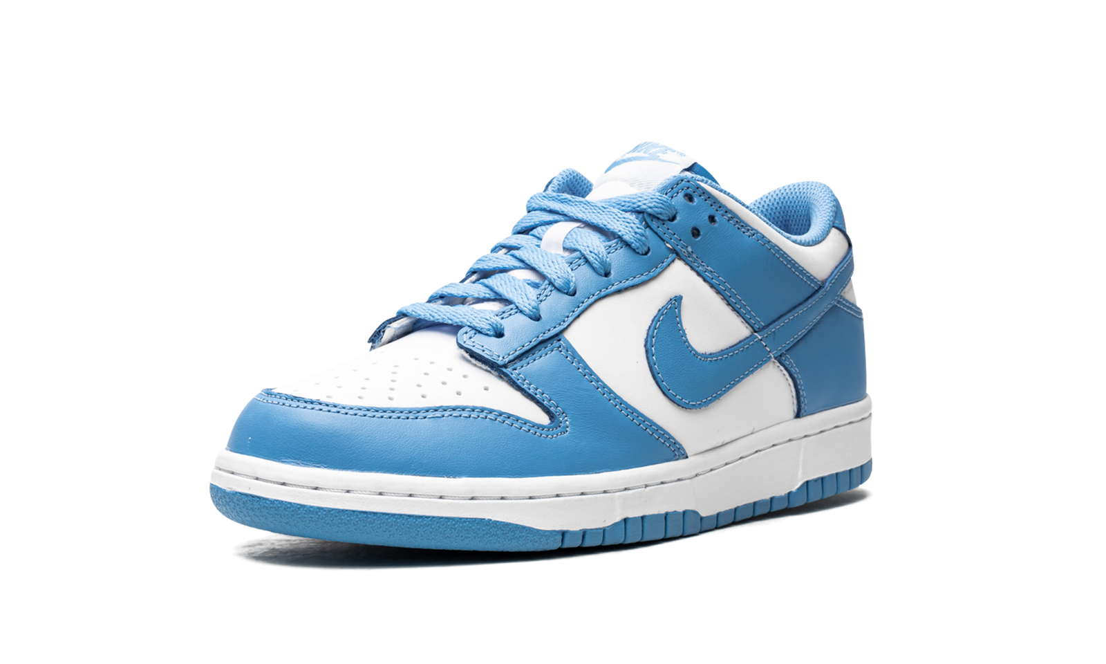 White/university blue/white leather Dunk Low sneakers “UNC 2021” from NIKE KIDS featuring signature Swoosh logo detail, panelled design, embroidered logo to the rear, round toe, front lace-up fastening, rubber sole and Release date: June 24, 2021. These styles are supplied by a premium sneaker marketplace. Stocking only the most sought-after footwear, they source and curate some of the most hard to find sneakers from around the world..