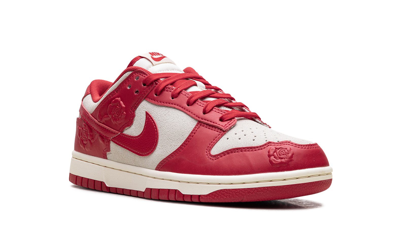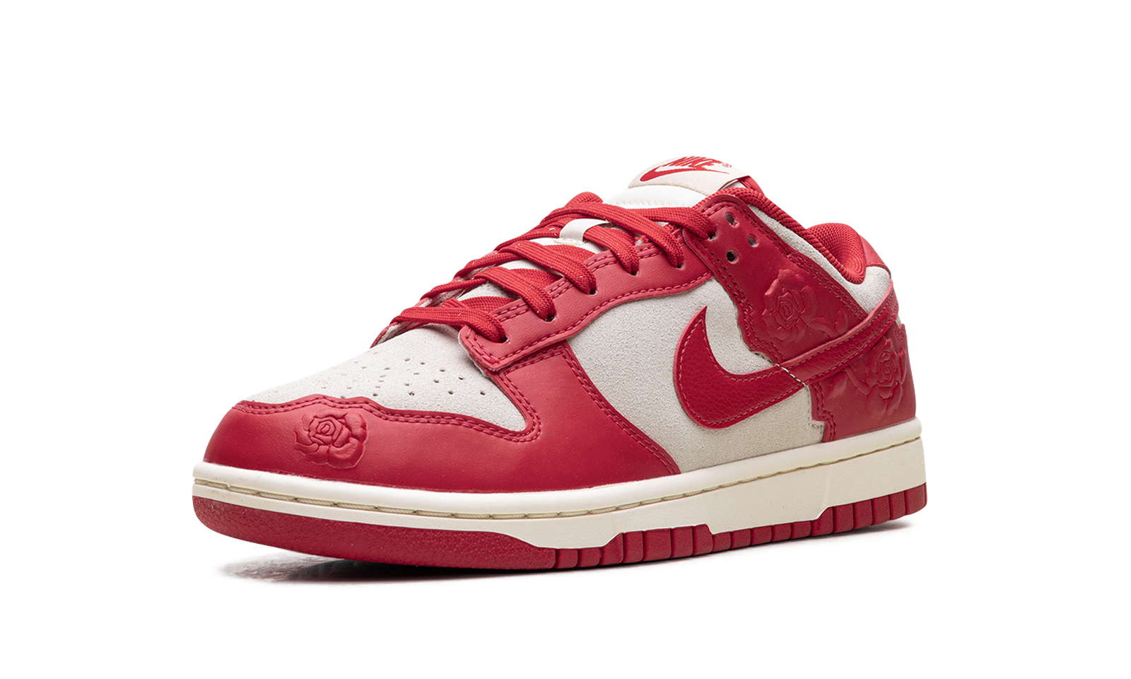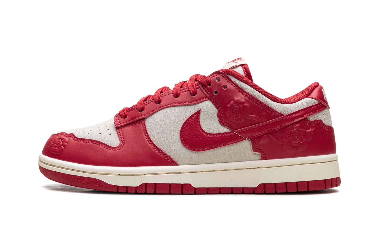The Nike Dunk Low Red Roses (Women’s) adds a whimsical and romantic twist to the beloved Dunk silhouette, presented in a Coconut Milk, University Red, and Pale Ivory colorway released in women’s sizing.