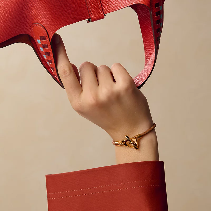 Swift calfskin and metal braided bracelet with stirrup clasp inspired by Herm??s’ equestrian heritage.
