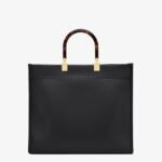 Medium Sunshine Shopper bag made of white leather with raised 3D-texture FF motif and rigid tortoiseshell-effect plexiglass handles.