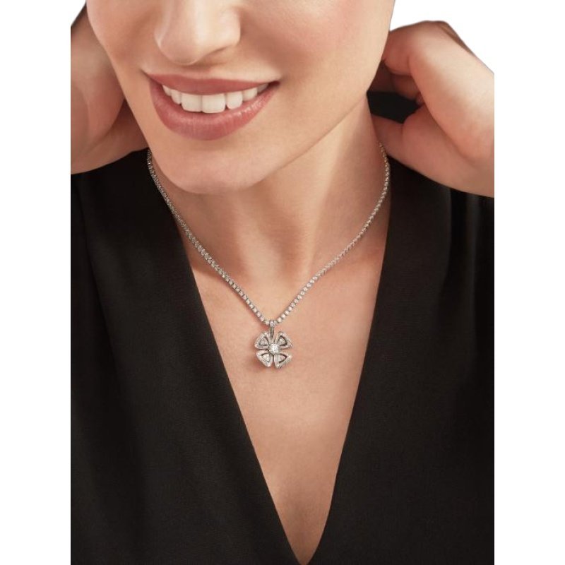 Blooming in the Eternal City of Rome, the Fiorever collection draws its inspiration from the charming four-petal flower cherished by the Romans as a symbol of happiness and joy. This delicate and feminine detachable jewel is full of romance and shines with a dazzling pendant that can be easily separated into a brooch. It cleverly combines the classic tennis diamond design with a magnificent floral pattern, exuding an irresistible charm.