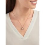 Blooming in the Eternal City of Rome, the Fiorever collection draws its design inspiration from the charming four-petal flower cherished by the Romans as a symbol of happiness and joy. Made up of two words rich in meaning:Fiore (flower in Italian) and forever (eternity in English), Fiorever celebrates the Romans’ love of life with a passionate and stunning design. Bvlgari’s precious classic floral motif is adorned with four diamond-paved hollow petals in rose gold, surrounding a sparkling central diamond, which blooms with timeless brilliance. Fiorever necklace in 18K rose gold, set with a diamond and adorned with diamond pavé