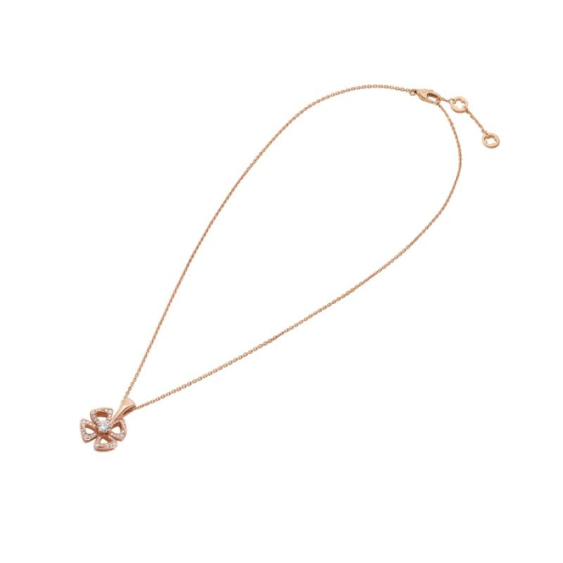 Fiorever necklace in 18K rose gold, set with a brilliant-cut diamond (0.10 ct) and embellished with pavé diamonds (0.06 ct).