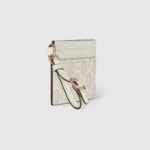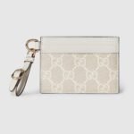 The GG Emblem collection reinterprets signature motifs through creativity and innovative functions, and is envisioned to be cherished for years to come. Introduced in the latest line of small accessories, this beige and white card case is crafted from the new GG Monogram fabric. Featuring an off white leather trim, the design comes with a matching wrist strap.