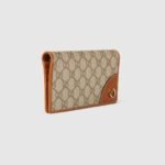 The GG Emblem collection reinterprets signature motifs through creativity and innovative functions , and is envisioned to be cherished for years to come. Introduced in the latest line of small accessories, this beige and dark brown continental wallet is crafted from the new GG Monogram fabric. The design features an embossed Gucci on the front and a D-ring for attachments.