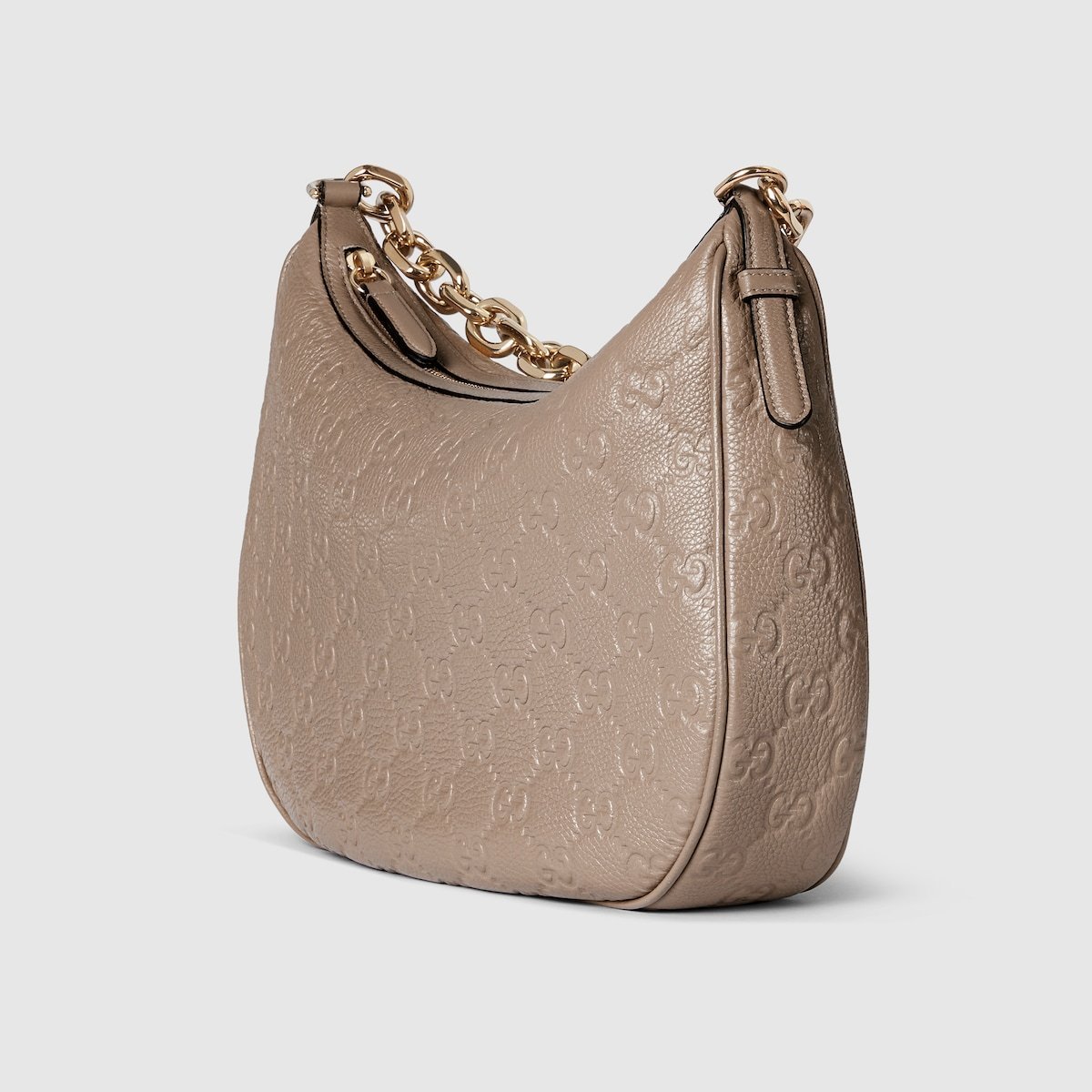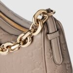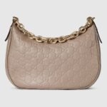 The new GG Emblem collection reinterprets the House??s history of elegance and craftsmanship. This medium shoulder bag is crafted from GG grainy leather and comes with a chain strap.