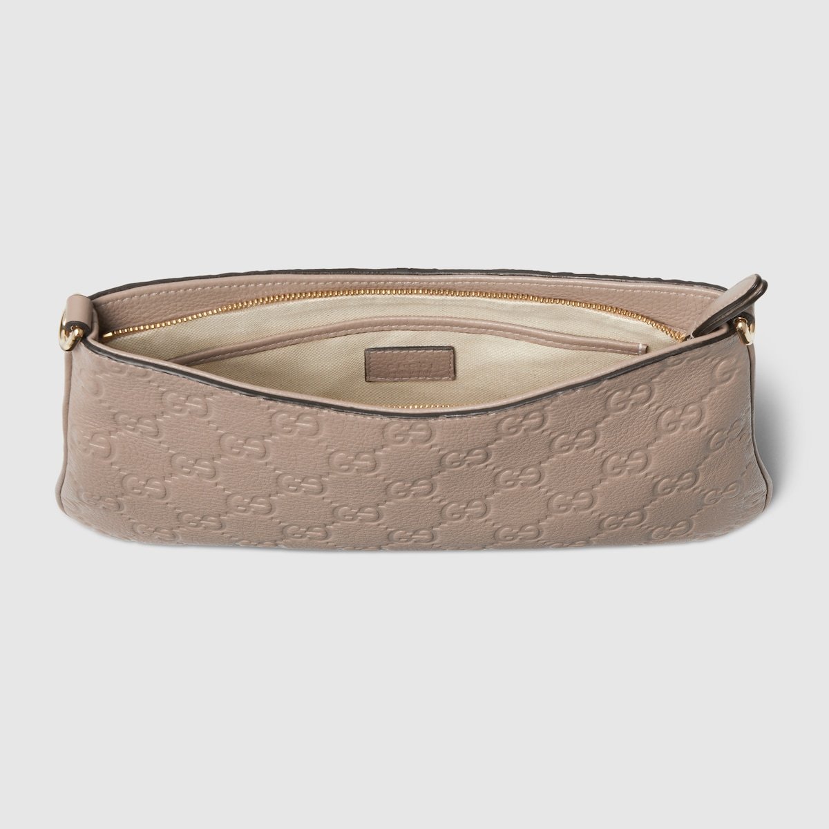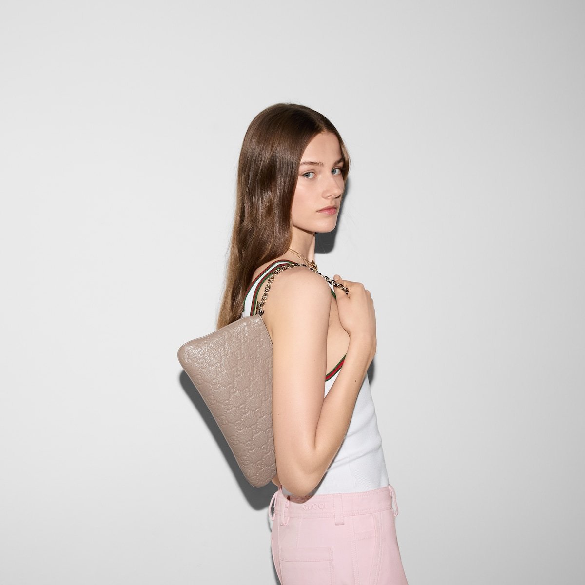 The new GG Emblem collection reinterprets the House??s history of elegance and craftsmanship. This medium shoulder bag is crafted from GG grainy leather and comes with a chain strap as well as a detachable leather shoulder strap.