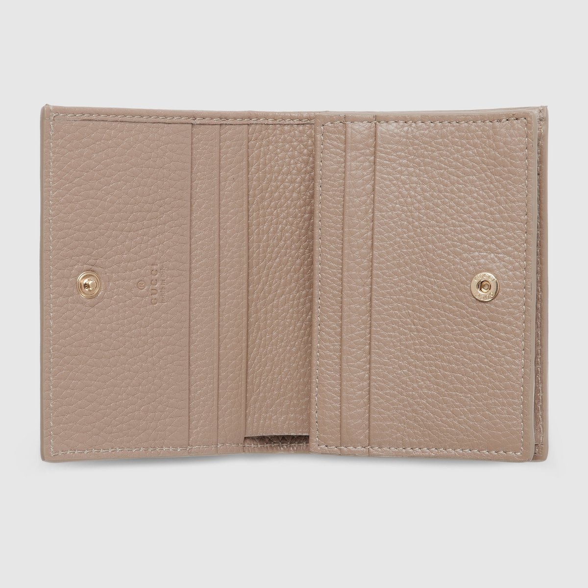 Reinforcing the timelessness of the GG motif, various small accessories spotlight the pattern in a soft-to-touch grainy leather. Bringing contrasting textures to the latest collection, the range is also available in a variety of neutral and pastel tones. This GG Emblem mini wallet appears in taupe GG grainy leather.