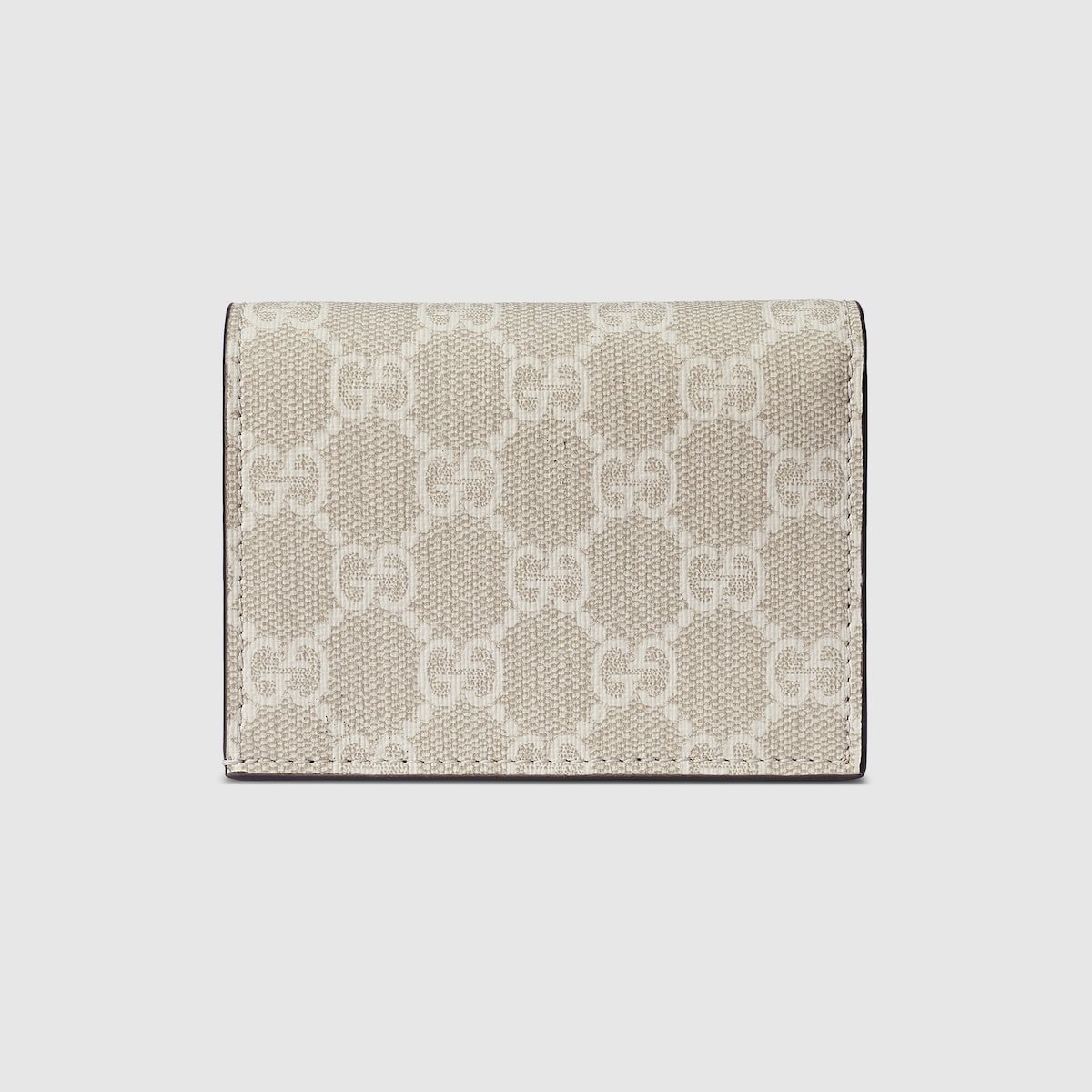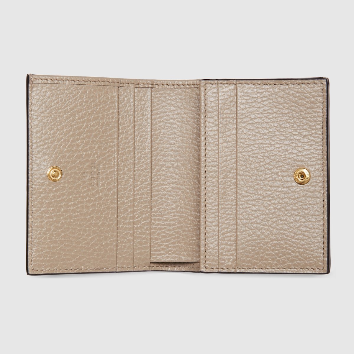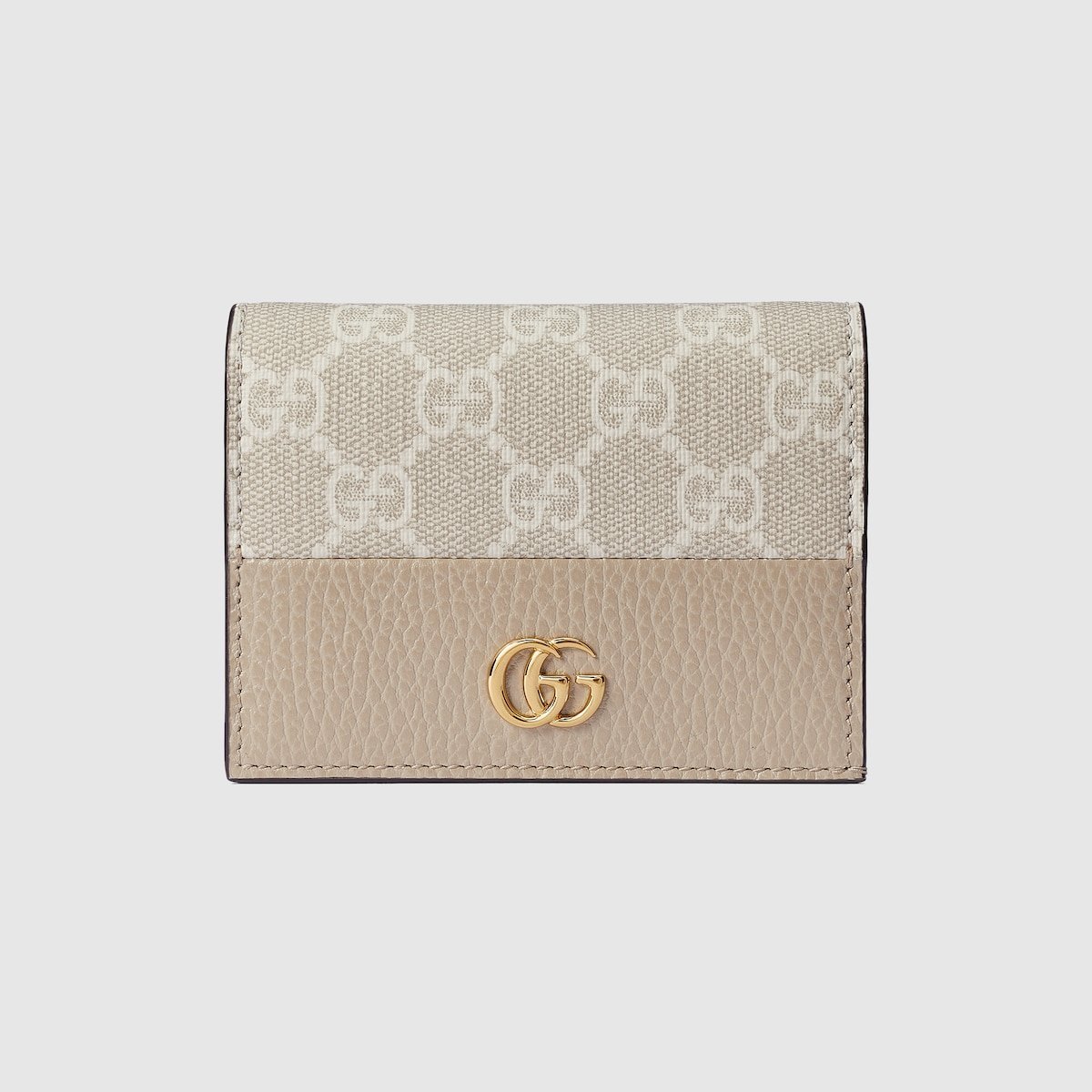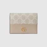 A card case wallet crafted from a mix of the House’s monogram canvas and smooth light pink leather, completed by five card slots and inside pockets. Part of the GG Marmont line, the style is defined by a mini version of the emblematic Double G hardware.