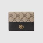 Taken from the ’70s archives, the Double G continues to define the GG Marmont line. Here, this card case wallet is crafted from beige and ebony GG Supreme canvas with black leather details.