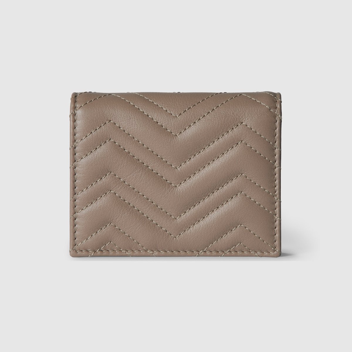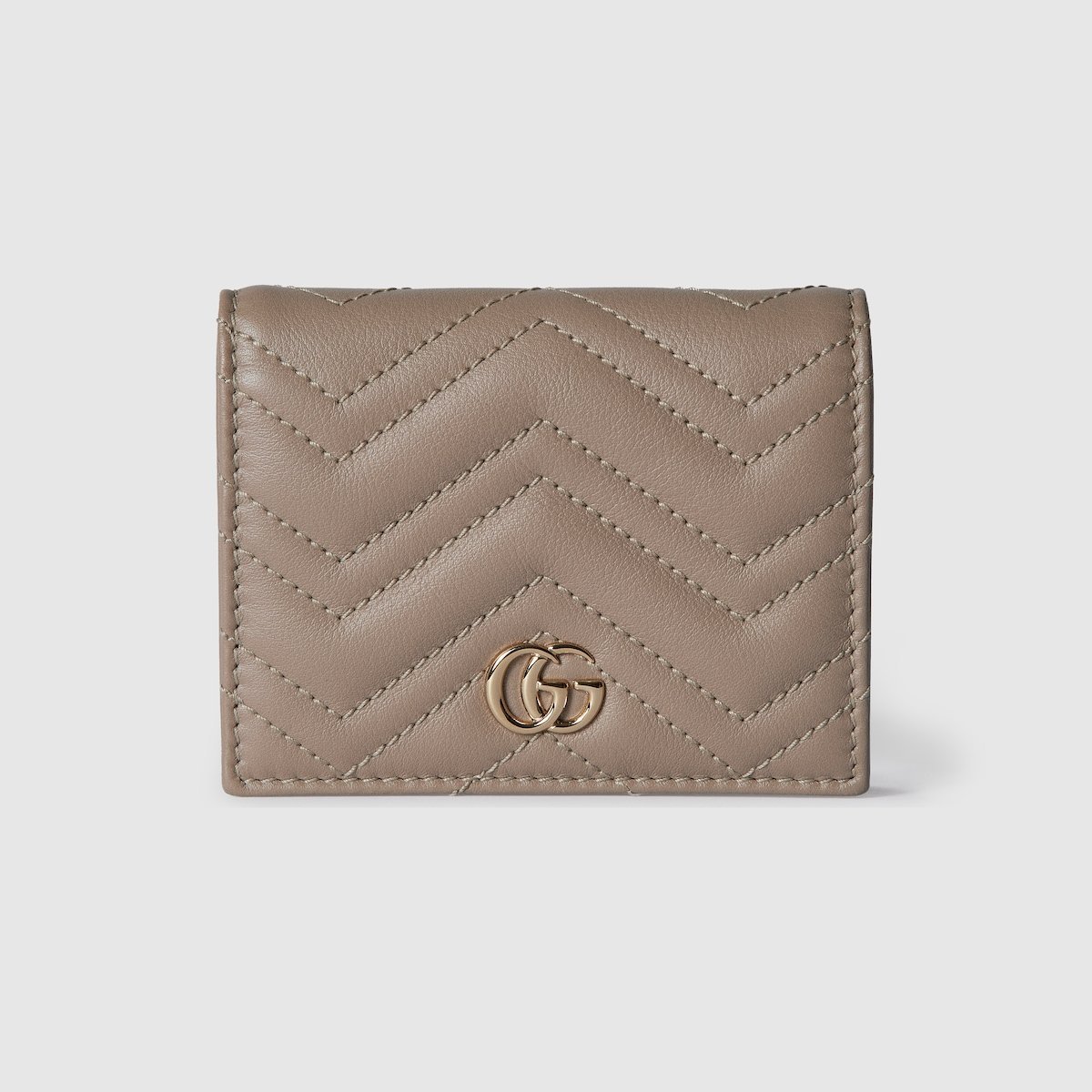 Embellished with the archival Double G logo, first introduced in the 1970s, the GG Marmont line has established itself as a signature style of the House. The two capital letters refer to the historic emblem, recognizable by the partially overlapping hardware on this card case wallet front. Crafted from taupe matelass?? leather, the elegant small accessory is evocative of Florentine craftsmanship.