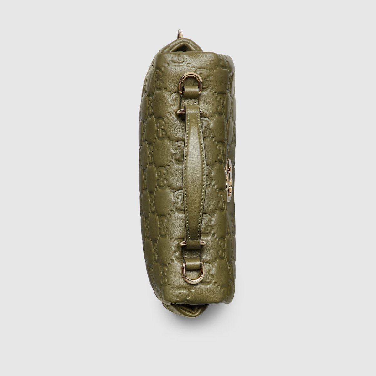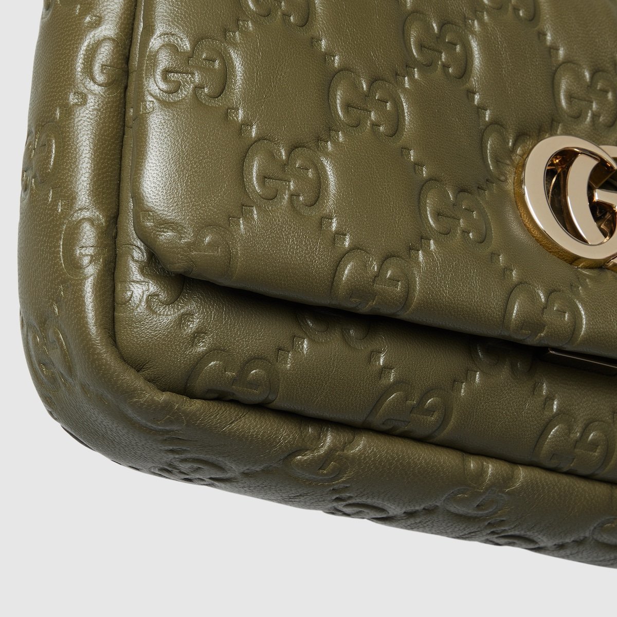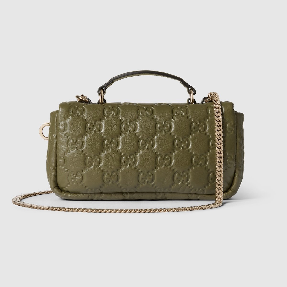 The GG Milano top handle bag debuted at the Fall Winter 2024 fashion show during Milan Fashion Week, paying tribute to the city which inspired the design. It features a new Double G hardware, and the puffy GG embossed leather has a soft and silky touch. The chain strap allows the bag to be worn crossybody or on the shoulder.