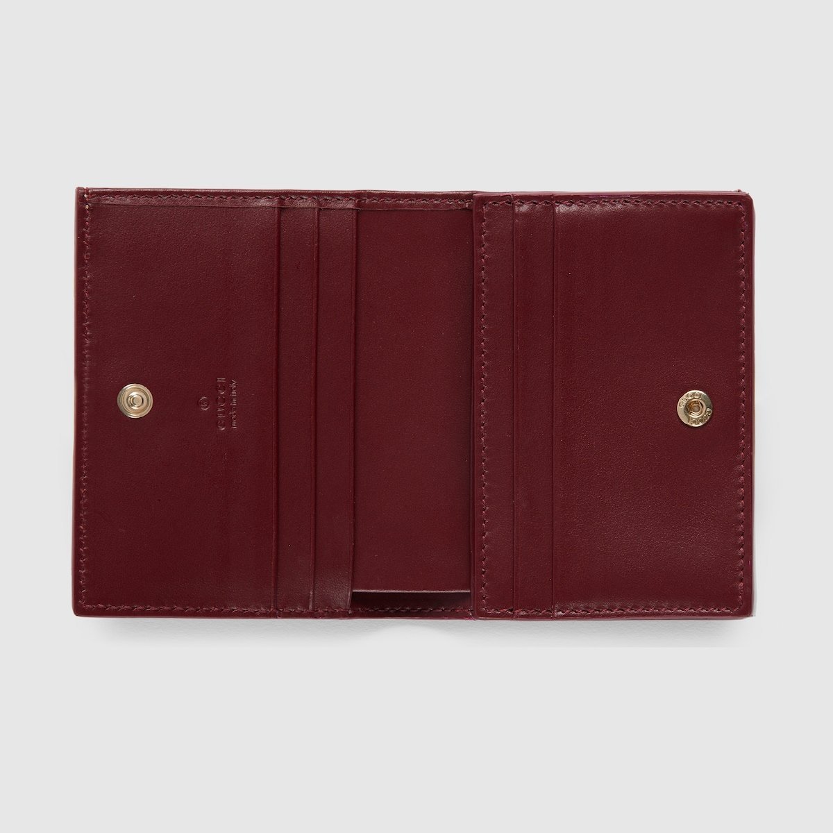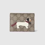 Sweet and playful animals, such as the cat, dog and panda, appear on a selection of small accessories in new GG Monogram coated fabric. The fun motifs are applied using a screen printing technique and leather patchwork. Here a dog detail brings to life this mini wallet.