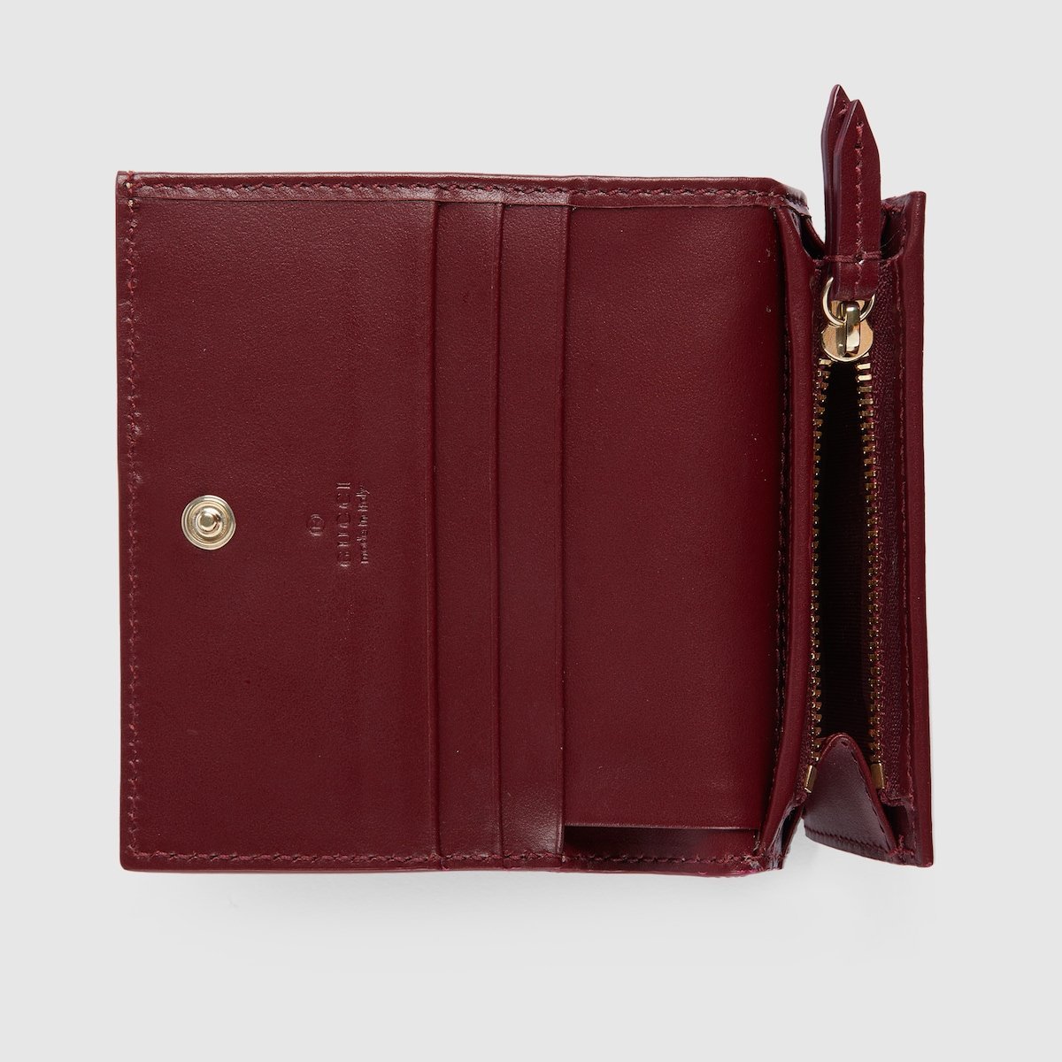 Inside: 5 card slots, open pocket, 1 zipper pocket, 1 bill compartment
