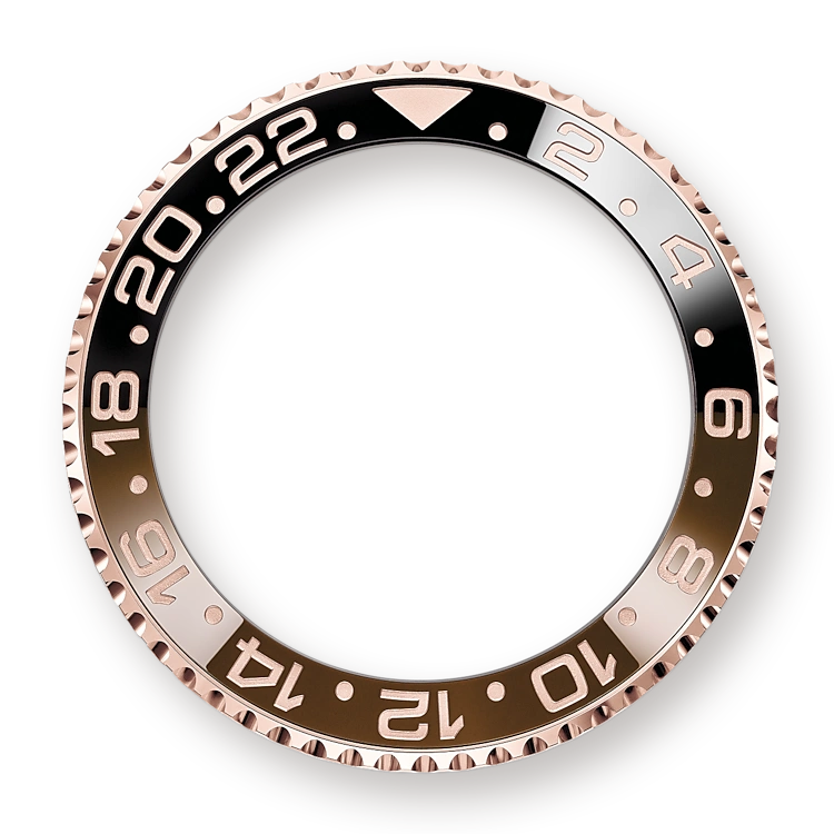 - Bidirectional rotatable 24-hour graduated bezel. Two-colour brown and black Cerachrom insert in ceramic, moulded numerals and graduations