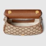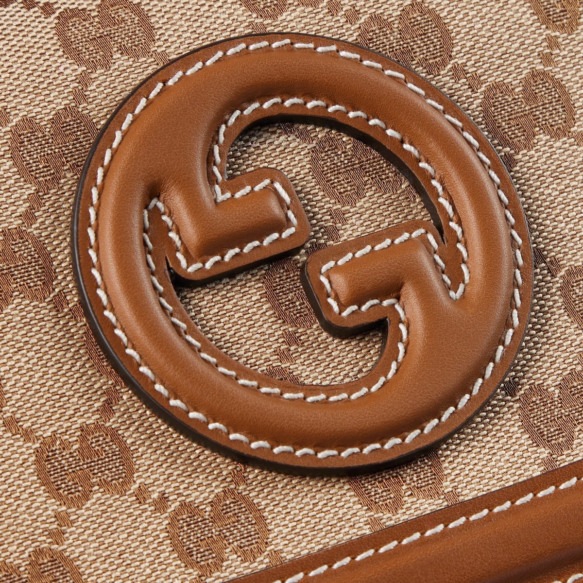 The new Gucci Blondie bag, whose distinctive logo first appeared in the House??s collections in the early 1970s, weaves together past and present in a fusion of nostalgia and modernity. This mini shoulder bag with an adjustable shoulder strap is crafted from beige and dark brown Original GG canvas.