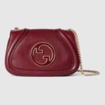 The new Gucci Blondie bag, whose distinctive logo first appeared in the House??s collections in the early 1970s, weaves together past and present in a fusion of nostalgia and modernity. This mini shoulder bag with a gold-toned chain is crafted from Gucci Rosso Ancora red leather, featuring the House’s round symbol in enamel.