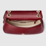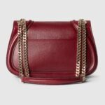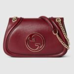 The new Gucci Blondie bag, whose distinctive logo first appeared in the House??s collections in the early 1970s, weaves together past and present in a fusion of nostalgia and modernity. This small shoulder bag is crafted from Gucci Rosso Ancora red leather, featuring the House’s round symbol in enamel. The gold-toned chain and leather strap can be worn on the shoulder or crossbody.