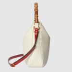Combining recognizable elements of the House, the medium-sized shoulder bag is defined by its bamboo handles and Double G hardware. Crafted from white leather, the accessory is further accentuated a contrasting red leather shoulder strap.