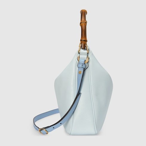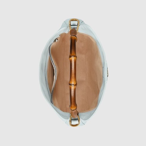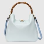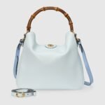 Combining recognizable elements of the House, the Gucci Diana is defined by its bamboo handles and Double G hardware. Crafted from pale blue leather, the soft structure of this variation on the staple accessory is further accentuated by a pastel colorway and tonal trims.