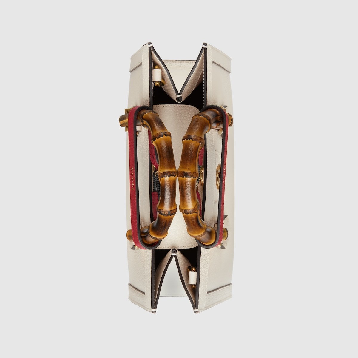 The concept of reinvention continues to shape the House’s designs. An evolution of a bamboo handle tote first introduced in 1991, the Gucci Diana represents the notion of style in constant evolution. The design plays with traditional details and renews them new meaning. Playing with this idea, the functional bands used to keep bamboo handles in shape are reimagined as playful leather belts. Here, the tote is introduced in white leather.