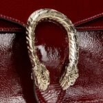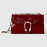 A soft, deconstructed version of the signature Dionysus shoulder bag presents a contemporary look. This style in sleek Gucci Rosso Ancora patent leather features the iconic tiger head closure with a flap and a sliding chain that can be worn both as a shoulder bag and a top handle bag, giving it many possibilities to wear.