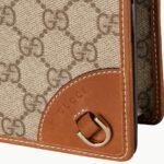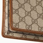 The new GG Emblem collection reinterprets the House??s history of elegance and craftsmanship. This beige and dark brown super mini shoulder bag is crafted from the new GG Monogram fabric. Featuring multiple compartments, it also features the D-ring for attachments.