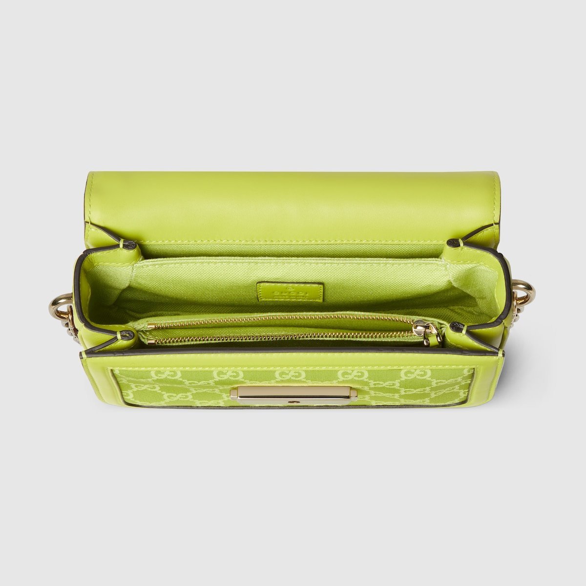 The Gucci Go is made for movement. In the Spring Summer 2025 collection, this shoulder bag is characterized by sophisticated yet lightweight GG canvas and a refined chain strap. It also features functional internal organization, and a detachable mirror on the back.
