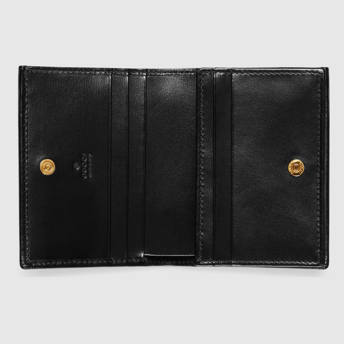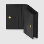 Introduced within the Gucci Horsebit 1955 accessories collection for Spring Summer 2020, the card case wallet is presented in black leather. The line is defined by the same double bar and ring design that is found within handbags??a detail that is part of Gucci’s genetic code and established as one of the most distinctive elements among the House symbols borrowed from the equestrian world.
