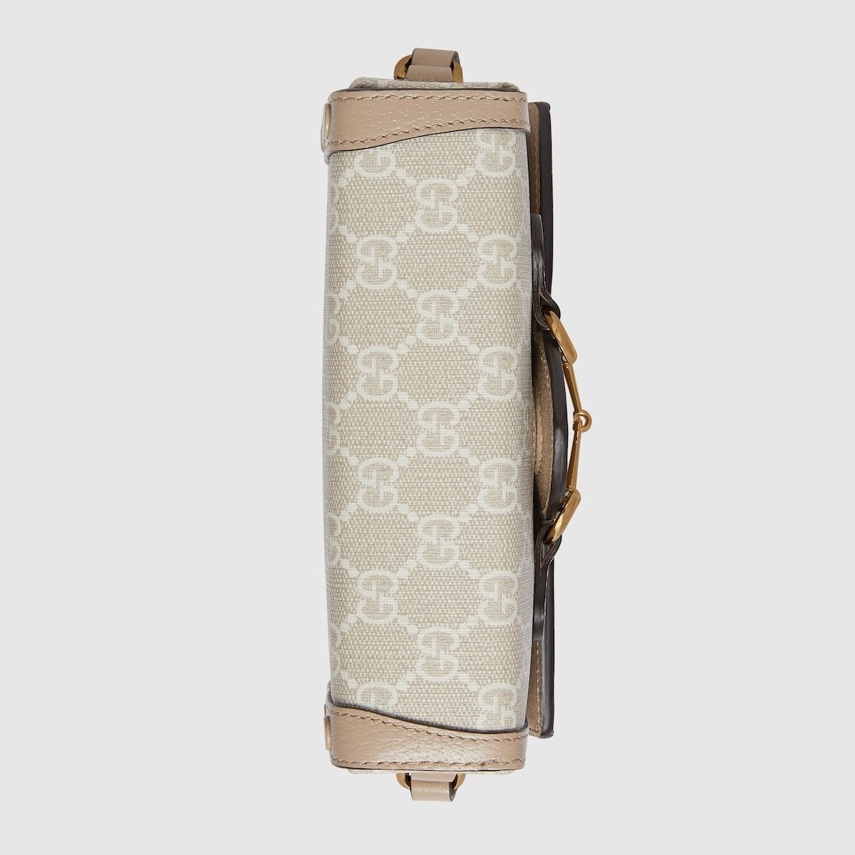An ode to the timeless Hollywood glamour that shaped Gucci Love Parade, classic elements from the House’s archives are reintroduced. A part of the Gucci Horsebit 1955 universe, this bag’s mini shape draws attention to the line’s signature hardware. Adding a new take on the accessory, the emblematic GG Supreme canvas is introduced in beige and white.