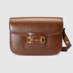 Introduced for Cruise 2020, the Gucci Horsebit 1955 bag is recreated from an archival design. With the same lines and forms first introduced over six decades ago, the accessory unifies the original details with a modern spirit, highlighting the Horsebit. Part of Gucci??s genetic code, the double ring and bar design has been established as one of the most distinctive elements among the House symbols borrowed from the equestrian world. Presented on a small flap shoulder bag, the hardware is paired with textured brown leather and completed with a special mechanism that adjusts the length of the shoulder strap so it can be carried on one shoulder or cross body.
