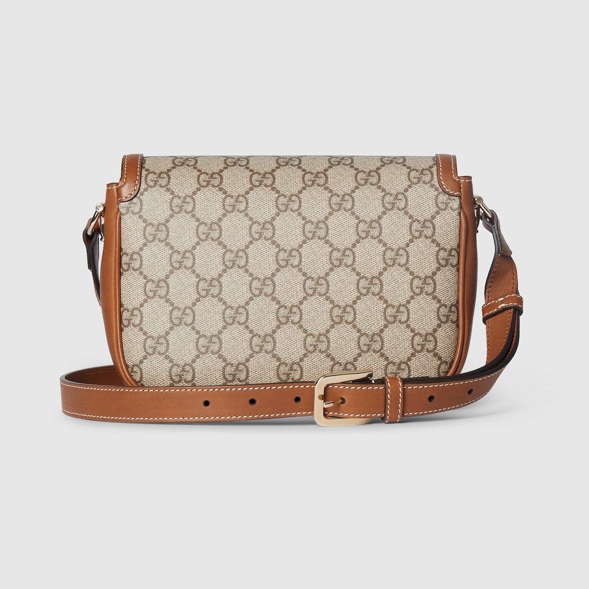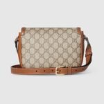 The Gucci Horsebit 1955 continues its equestrian-inspired design with the double ring and bar hardware, blending light gold-toned details and coated GG Monogram fabric, with a soft and sophisticated feel, on this shoulder bag.