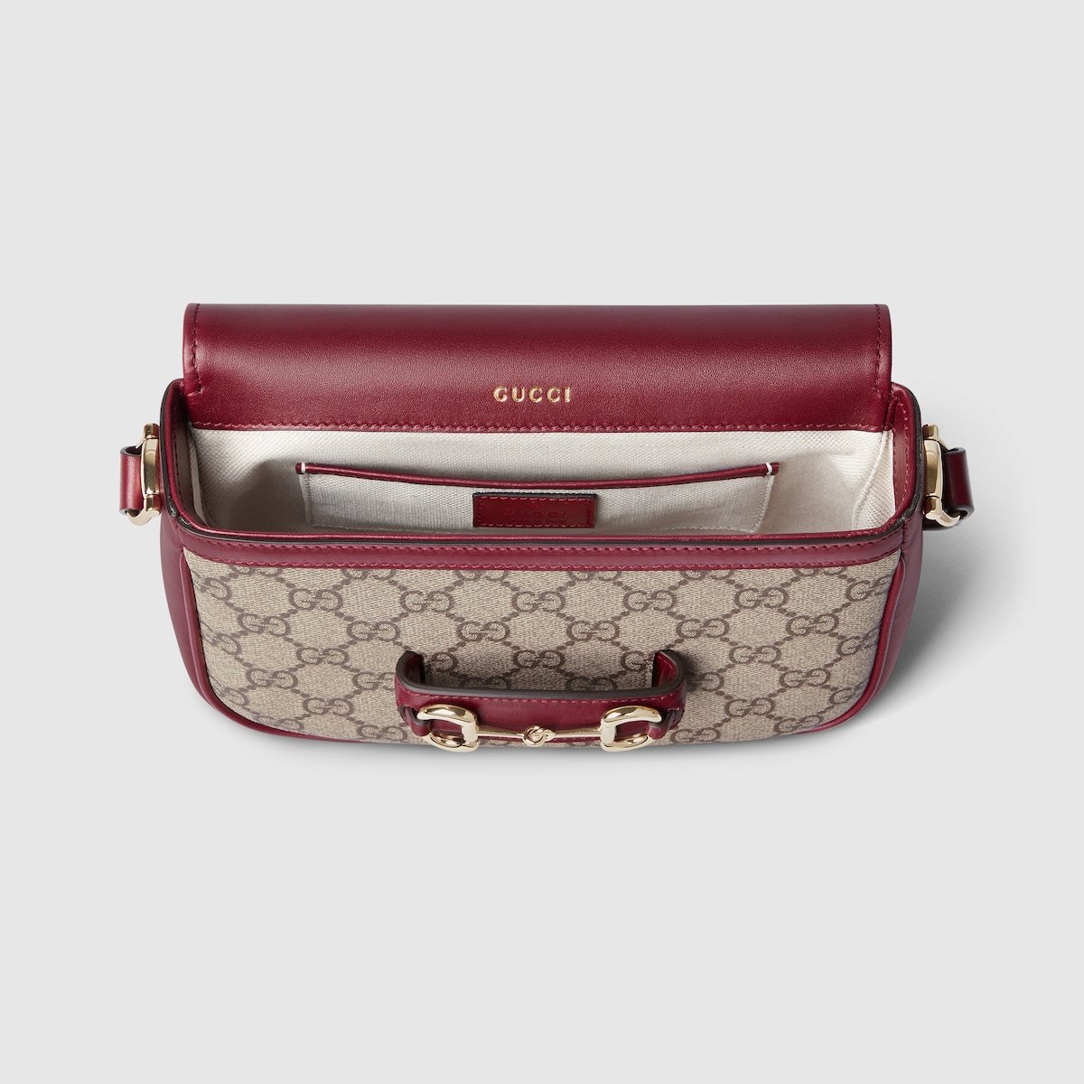 The Gucci Horsebit 1955 Soft continues to highlight its signature double ring and bar hardware. This mini shoulder bag style is crafted from the new GG Monogram coated canvas, which has gone through a unique heat embossing process to create the motif and a soft, sophisticated feel.
