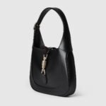 The new Gucci Jackie 1961 is crafted from premium fine leather which highlights the craftsmanship, crescent shape, and sleek silhouette of the House’s iconic shoulder bag. Light gold-toned hardware, leather trim, and an additional Web strap gives this Jackie 1961 small shoulder bag in black leather further styling options.