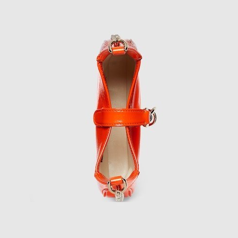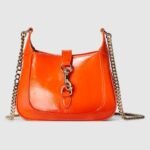The Jackie Notte is a new handbag designed for Gucci by Creative Director Sabato De Sarno. It embodies the self-confidence of the iconic Jackie line, with a new silhouette and subtle details that make it perfect for nighttime wear. Orange patent leather, a hook closure, and light gold-toned Gucci lettering chain strap give this mini shoulder bag a unique touch.