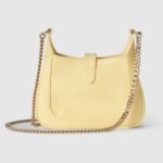 Inspired by the summer spirit and beach clubs on the Italian coast, this item is part of Gucci Lido. The Jackie Notte embodies the self-confidence of the iconic Jackie line, with a new silhouette and subtle details that make it perfect for day to night wear. Light yellow patent leather, a hook closure, and light gold-toned Gucci lettering chain strap give this mini shoulder bag a unique touch.