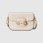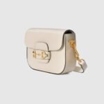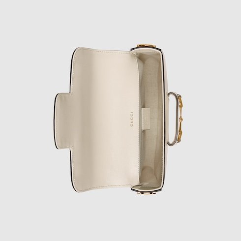 Petite versions of the Gucci Horsebit 1955 add a hybrid twist to the vintage inspired line. Enriched with two different shoulder straps, the white leather mini bag??s character transforms from understated elegance with a tonal leather strap to a strong logo feel thanks to a red and green Web option.