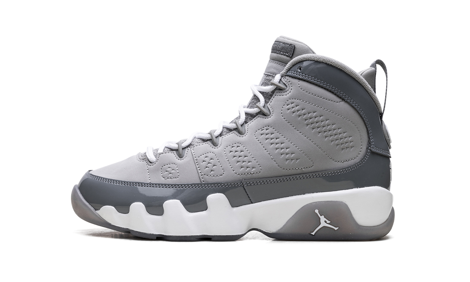 The Air Jordan 9 GS “Cool Grey” is a grade school version of Michael Jordan’s 9th signature shoe. The kids edition of the 2025 AJ9 “Cool Grey” retains the key details of the Jordan 9 colorway that first released in 2002. The upper combines different shades of grey and features a patent leather mudguard. The outsole also features the Cool Grey tone, and Jordan’s jersey number “23” appears on the heel.