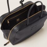 Cosmopolitan, versatile, and essential:the new leather hobo bag simultaneously displays classic allure and an expression of dynamic, ever-changing modernity. The embossed lettering logo decorates the design with iconic Miu Miu style while the Re-Nylon lining completes the aesthetic with a refined detail.