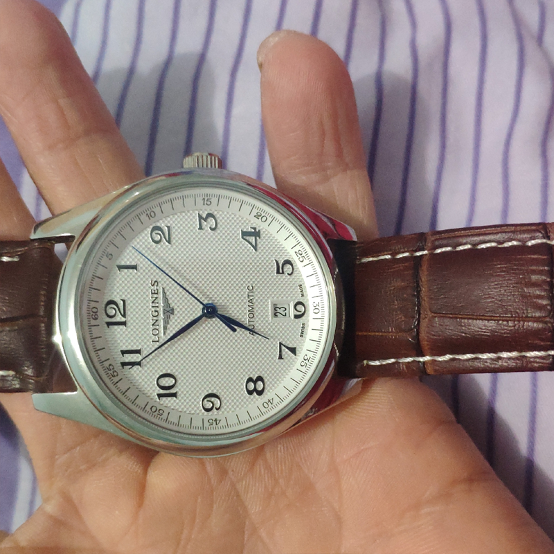 • Design Style: This watch is part of the Longines “Master Collection,” known for its simple yet refined design. It features a silver “barleycorn” textured dial with blue hands, giving it a sophisticated look. The Arabic numeral hour markers are clear and easy to read, making it perfect for both business and formal occasions.