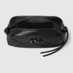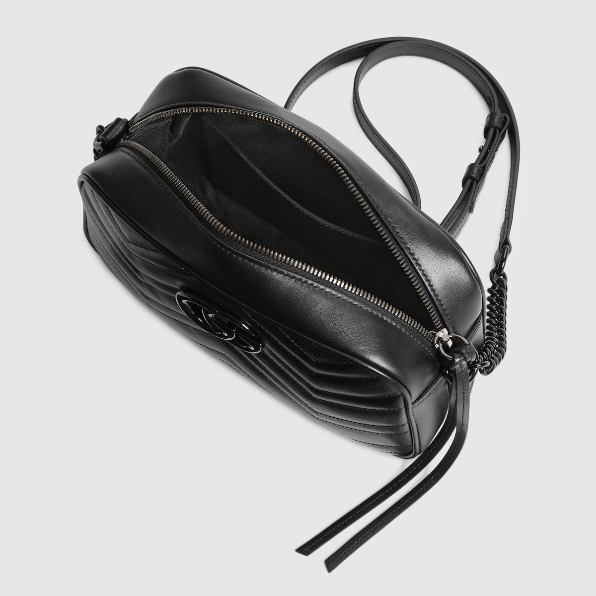 The small GG Marmont chain shoulder bag has a softly structured shape and a zip top closure with the Double G hardware. The chain shoulder strap has a leather shoulder detail. Made in matelass?? leather with a chevron design. The emblematic accessory is introduced with tonal hardware for Gucci Love Parade.