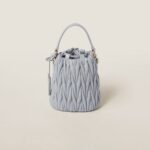 Fine matelassé workmanship gives this nappa leather micro bag a compact and modern look thanks to the three-dimensional, textured, and extremely sophisticated effect. The Miu Miu logo stands out with an iconic and instantly recognizable touch.