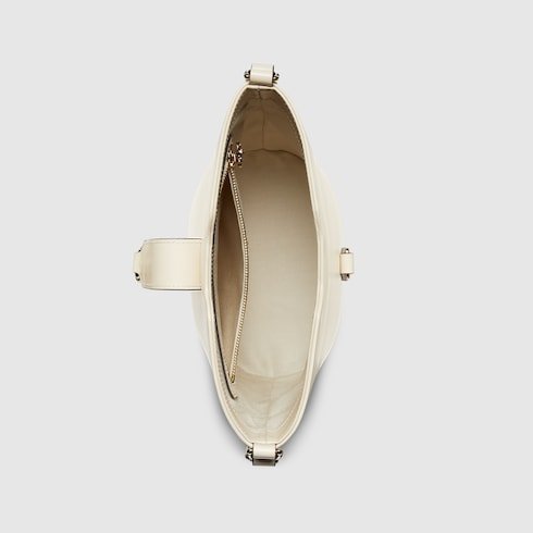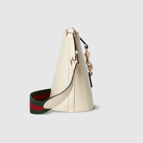 This mini bucket shoulder bag is crafted in ivory leather. This accessory is a perfect blend of functionality and modernity thanks to the design with hook closure and a Web shoulder strap.