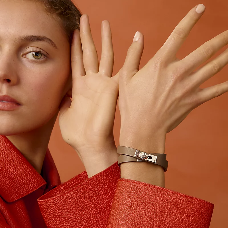 Swift calfskin double bracelet with mini Kelly lock.